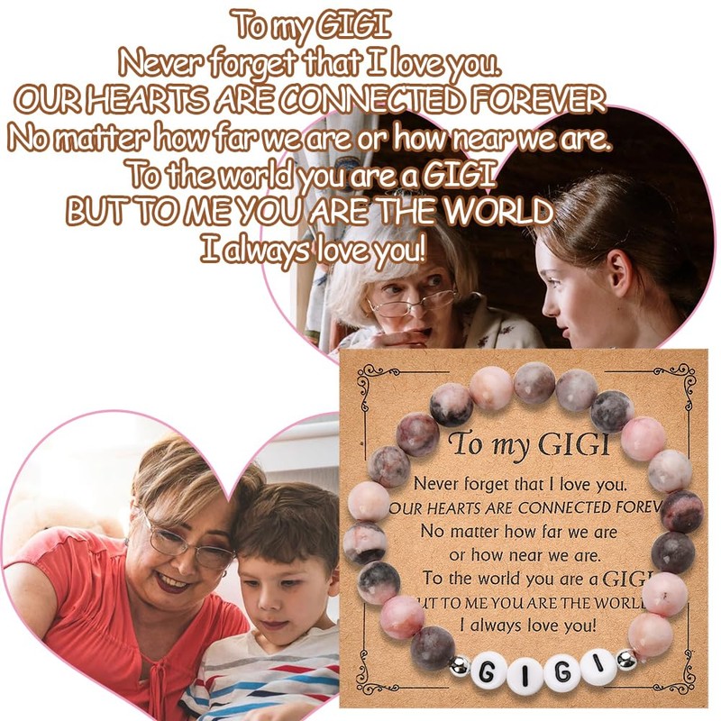 You will received: a natural stone bracelet for gigi and a to my gigi greeting card