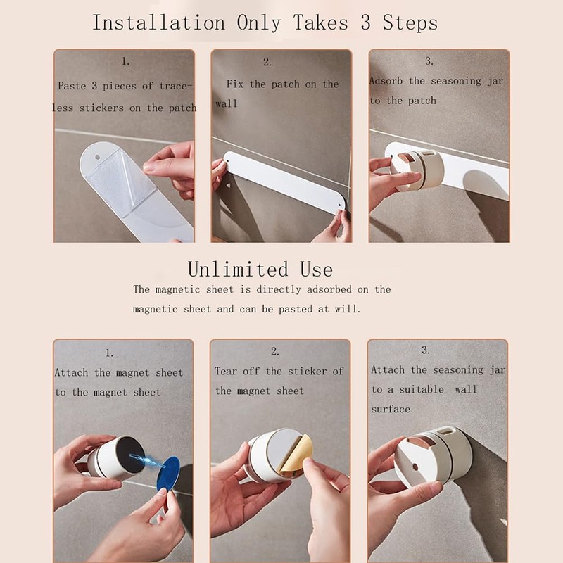 - ✔【Magnetic Containers】: The bottom of the condiment bottle can be installed with its own magnetic sheets attached to the iron plate, you can paste them on the wall to keep the operating table clean and tidy.