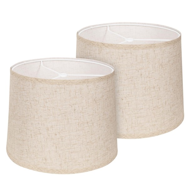 GIGIVOSHA Lamp Shades Set of 2 - Drum Lampshades 11.4" x 12.9" x 9.8" Inches, Fabric Medium Replacement Lampshades for Table Lamp, Floor Lamp, Assembly Required, Spider,Linen