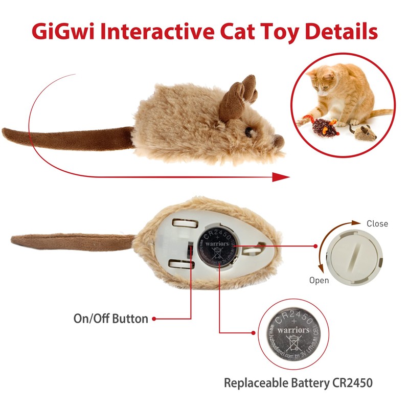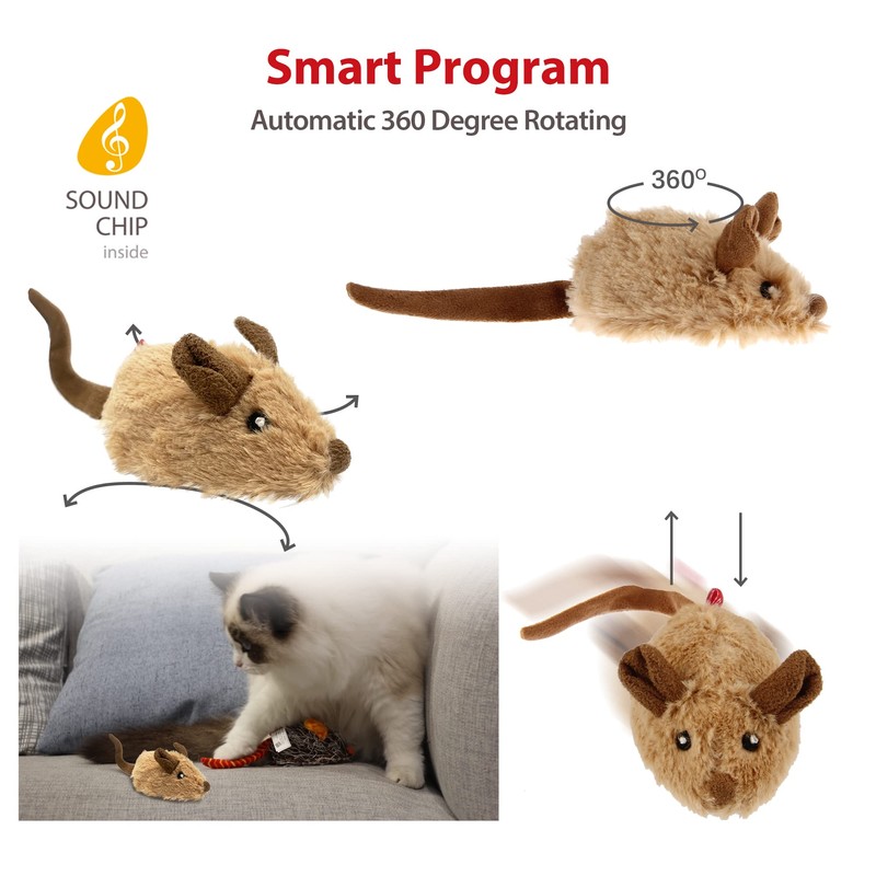 - AUTOMATIC CAT TOY: Turn the cat mouse toy on and put on the flat floor, your cat touches this kitten toys, the mouse cat toy moves in irregular way and make realistic mouse sound, intriguing your cat to chase and play. Not suitable for use on carpets.