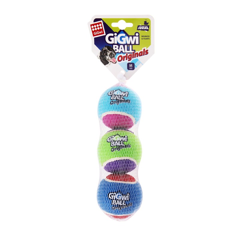 - MULTIPLE TENNIS BALLS, MULTIPLE COLORS: The GiGwi Original Ball comes in a 3-pack. Each ball comes in three different colors, Blue/Pink, Blue/Red, and Green/Purple