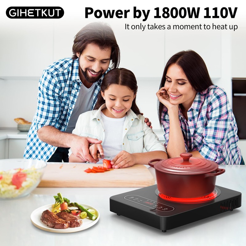 - Suitable for All Types of Cookwares: GIHETKUT single Electric cooktop can be used with any type of cookware in your home, such as aluminium pans,copper pans, cast iron frying pans and non-magnetic stainless steel pans,please use flat-bottomed pots. Electric stove top Simply wipe with a clean cloth when cool. Please install according to the product manual and contact us at any time.