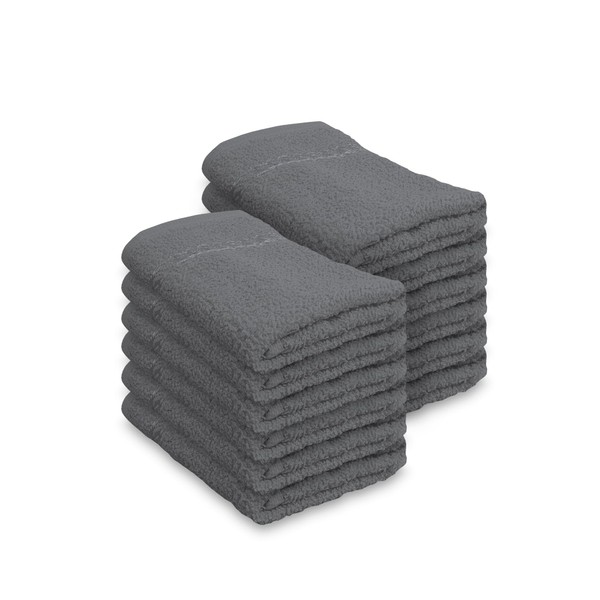 GILA Toalla Facial de Algodón Hipoalergénico Essentials I Paquete de 12 Toallas para Cara Color Gris (30 x 30 cm)