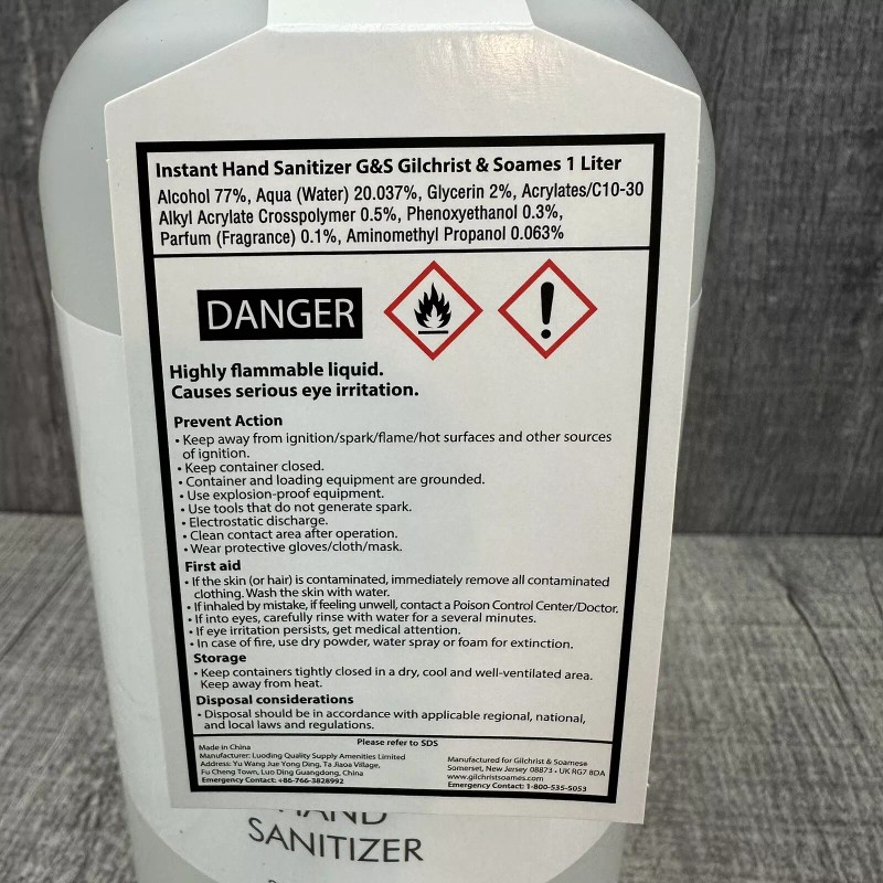 GILCHRIST & SOAMES 1 Liter 33.8 Fluid OZ Instant Hand Sanitizer High Quality