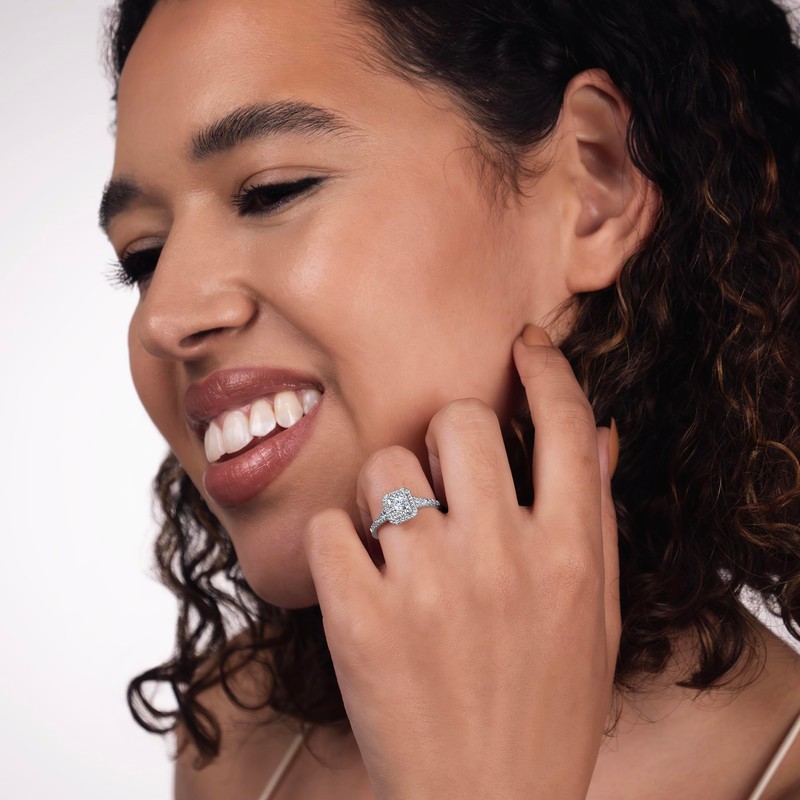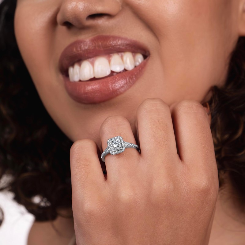 - This stunning square shaped lab grown diamond engagement ring is crafted in 925 sterling silver. With a weight of 1/2 carat, this lab diamond ring sparkles with brilliance, captivating attention with its remarkable clarity of SI1-SI2 and striking F-G color grade. Discover elegance with our womens lab grown diamond ring- a splendid addition to any collection, radiating luxury and beauty.