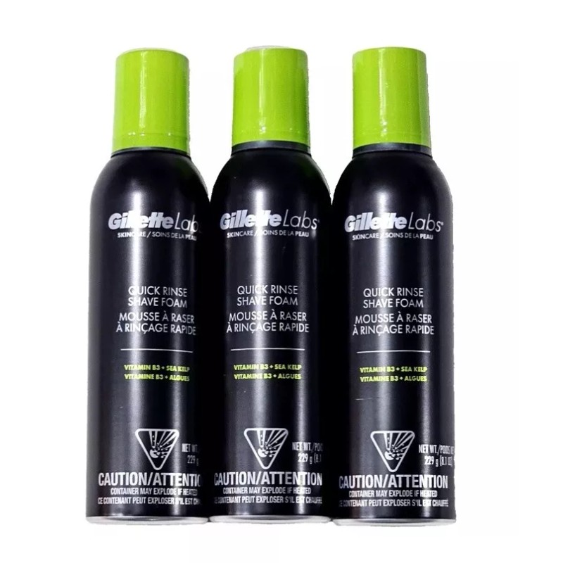 Gillette 3 Pack Gillette Labs Skincare Quick Rinse Shave Foam Vitamin B3 Sea Kelp 8.1oz