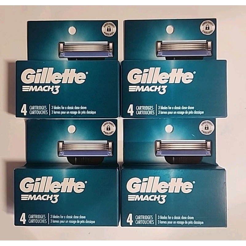 Gillette 4 Gillette Mach3 Mens 4 ct Razor Blade Cartridge Refills - 16 Total Cartridges