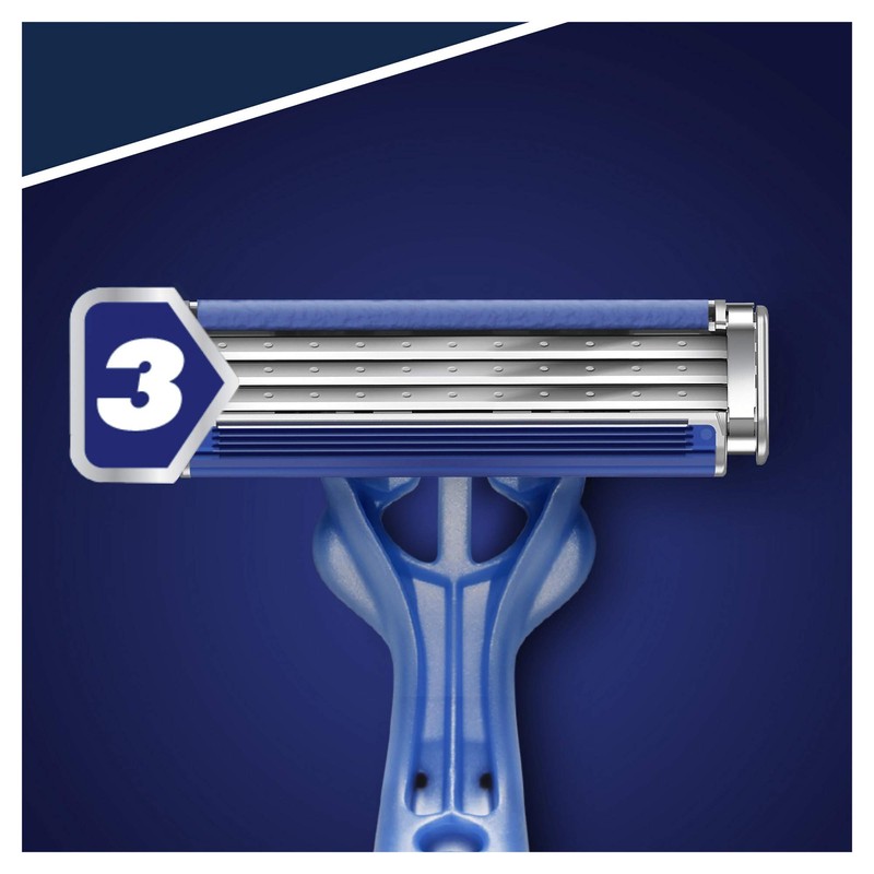 - Disposable razor with 3 blades that detect skin for a comfortable shave