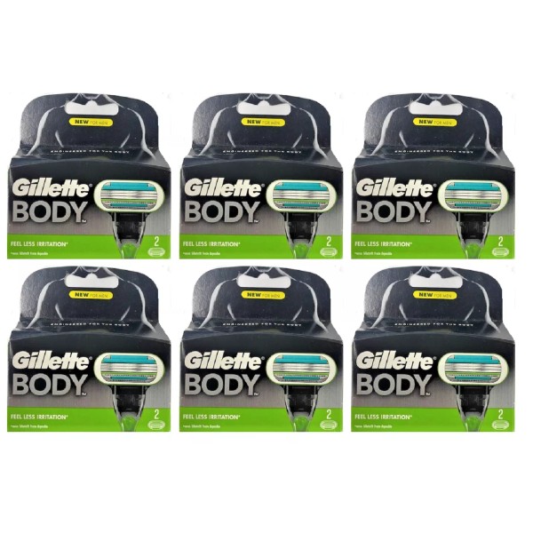 Gillette Body Razor Blade Refills Fits on Mach3 & Venus Handle, 12 Cartridges