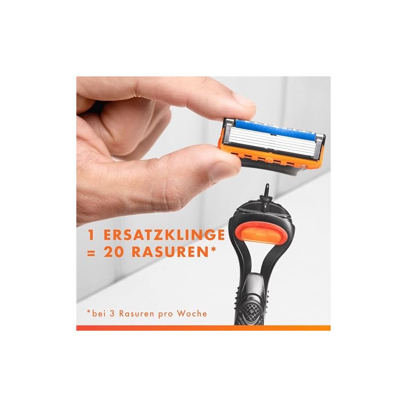 • 1 Ersatzklinge = 20 Rasuren (bei 3 Rasuren pro Woche)