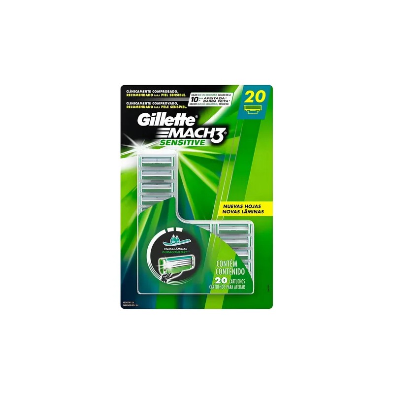 🪒 Gillette Mach3 Sensitive - Pack 20 Cartuchos Recargables | 3 Hojas Flexibles + Banda de Aloe | Ideal para Piel Sensible | Afeitado Suave sin Irritación |