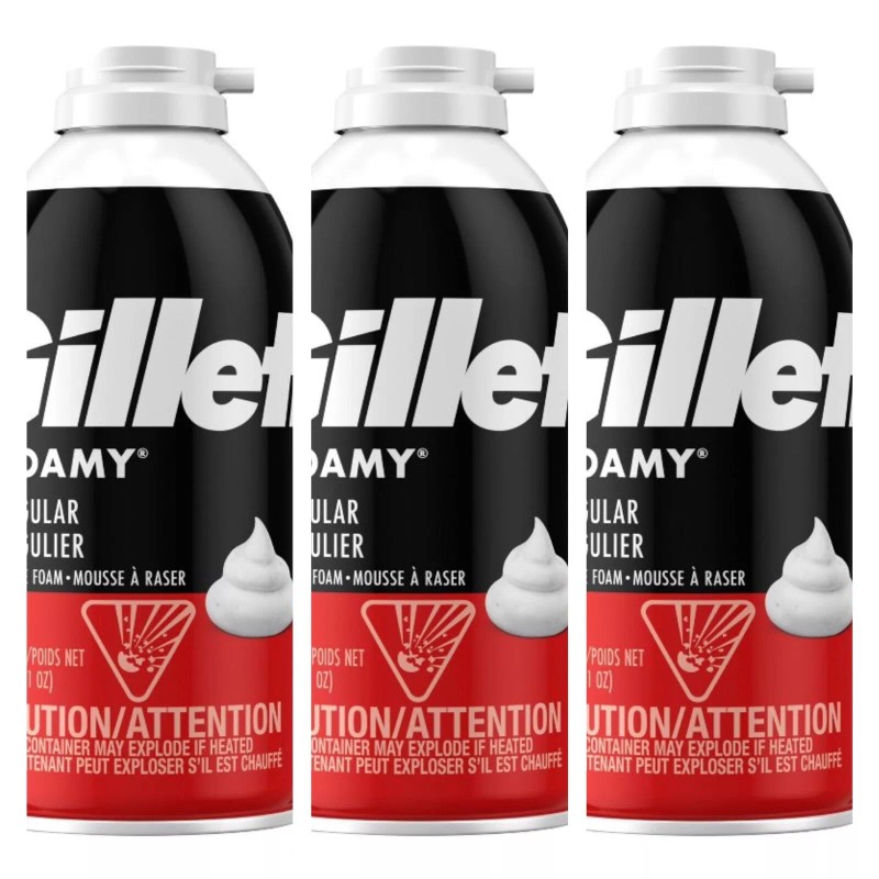 Gillette Pack of 3 New Gillette Foamy Shave Foam cream soap Regular Original 11 Ounce