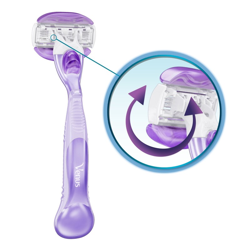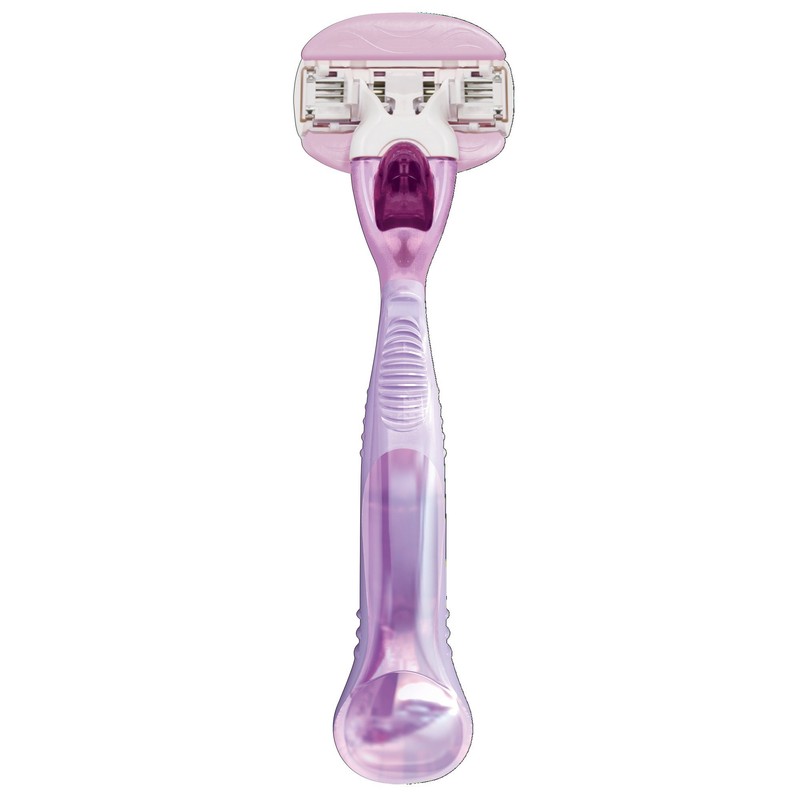 - Integrated shaving gel pads with botanical oils and fresh tropical fragrance that adapt flexibly