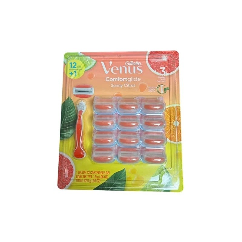 Gillette Venus Comfort Glide Sunny Citrus, 1 Razor + 12 Cartridges Gel