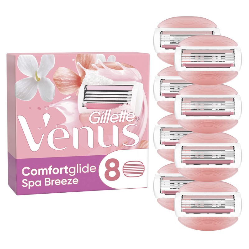 Gillette Venus ComfortGlide Spa Breeze Razor Blades Women, Pack of 8 Razor Blade Refills, Lubrastrip with A Touch of Botanical Oils