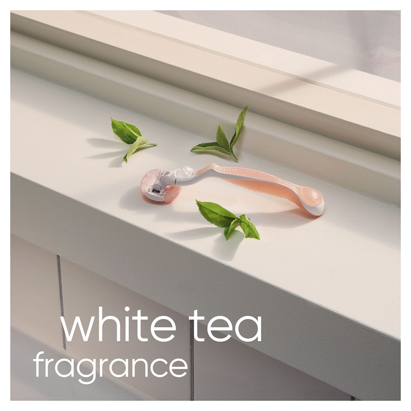 - With flexible shave gel bars which release lush body butters and a white tea scent