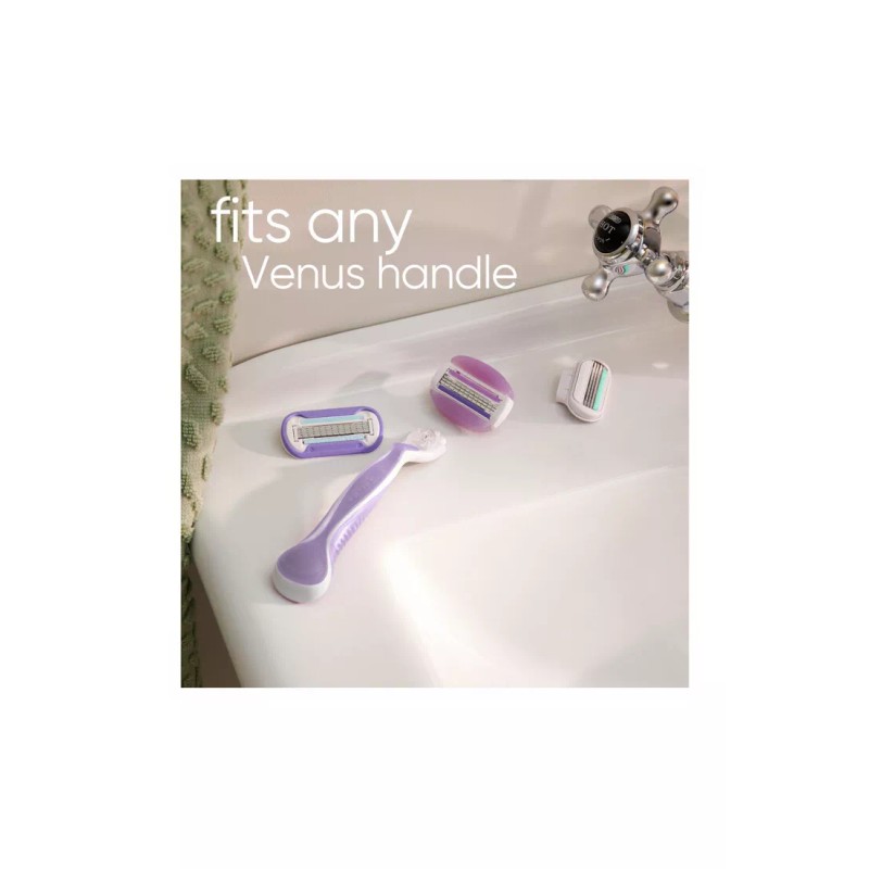 Venus female razor blades are designed with a woman's body in mind. From handles designed for a comfortable grip, to pivoting heads that contour to curves, Venus razors for women are designed to help reveal touchably smooth skin. Venus ComfortGlide Freesia women's razors feature 3 curve hugging blades for a smooth, close shave that lasts. The razor blade refills come equipped with built in flexible gel bars that, when wet, release rich Freesia scented body butter lather for glide and comfort. These flexible gel bars release a rich Freesia scented body butter lather, guarding your skin against nicks, cuts and irritation. Venus ComfortGlide women's razors feature an adaptive, pivoting design that adjusts to your body's contours and a rounded head that hugs curves and fits easily into hard to shave areas. No awkwardly angling your razor. Did you know that any Venus blade refill fits any Venus razor handle (except Simply Venus and Venus Pubic Hair Razor)? Shave your way without buying a whole new Venus handle.