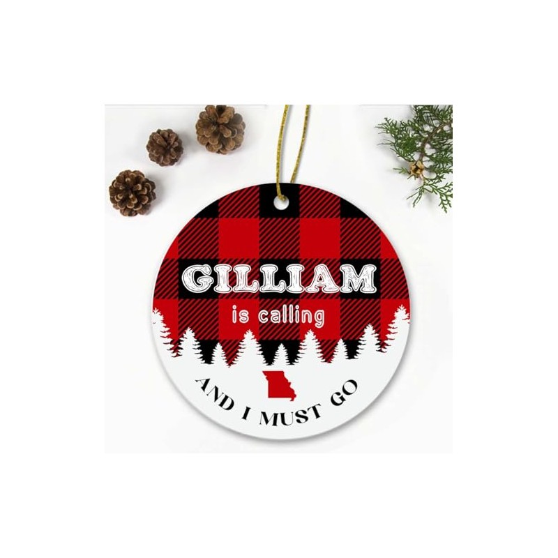 Gilliam, MO Christmas Ornaments Gilliam is Calling and I Must Go Gilliam Missouri Traveling Souvenir Ornament Hometown Keepsake 3" White