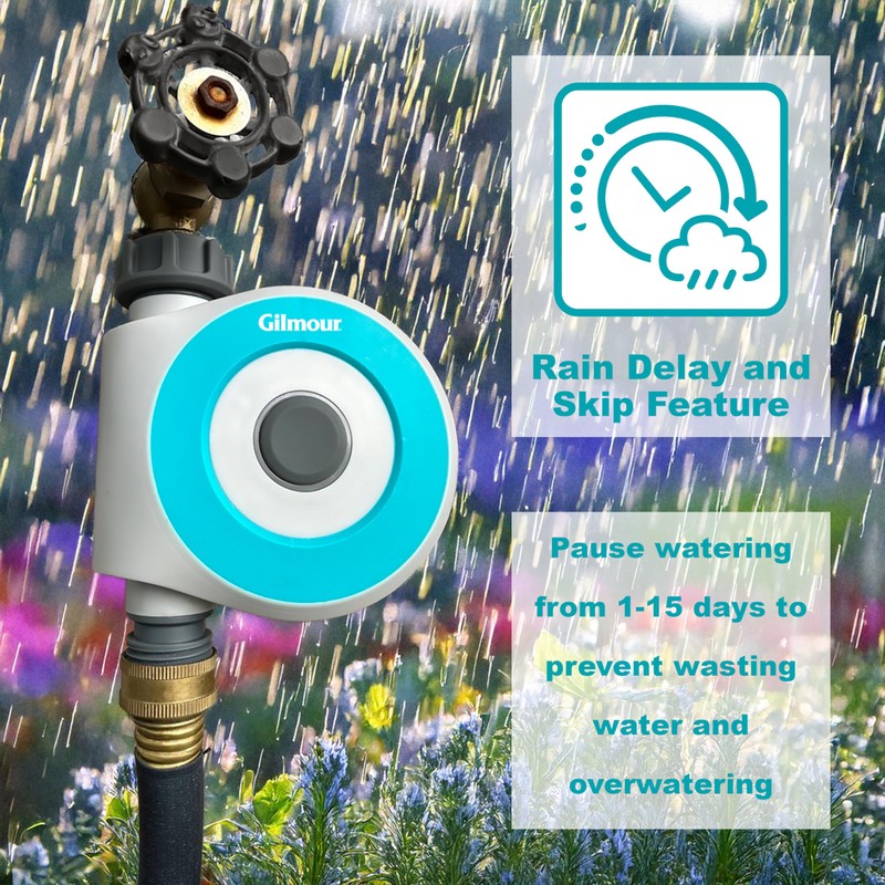 - Garden hose timer comes with rain delay feature allowing users to pause watering from 1 to 15 days and features an alarm function in the app to alert users of water leakage