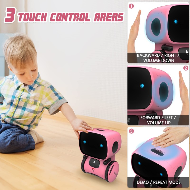 - 【Touch Control & Voice Control 】Robot will go forward/back,turn left/right when you touch the sensing area,Super easy to operate and enjoy ; You can order the robot when the robot is in voice controlled mode, the robot will response to you according to your command.