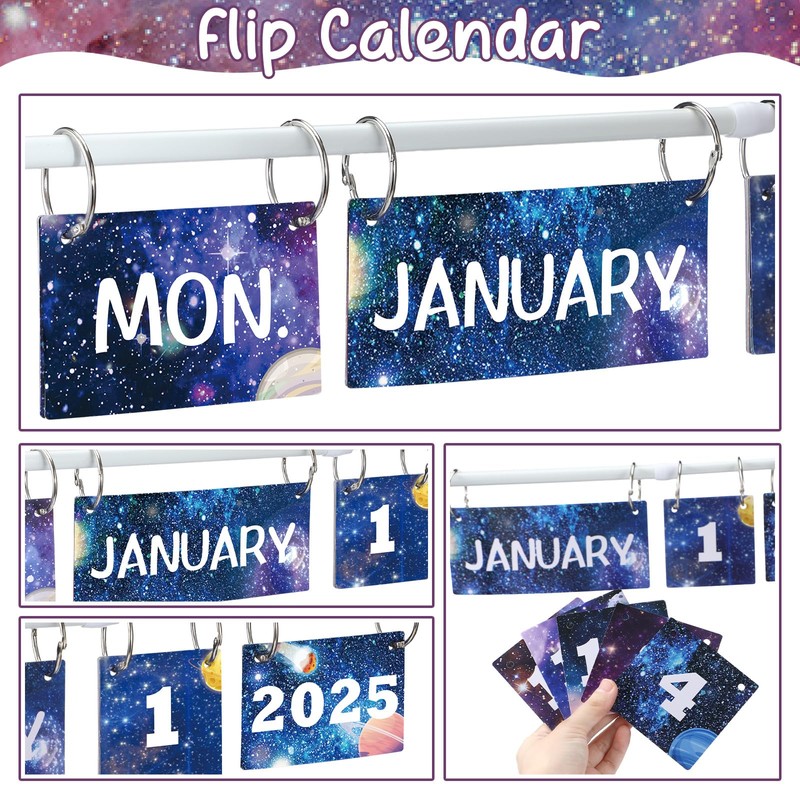Gilprop Flip Calendar Bulletin Board Set with Holder Adjustable Calendar Display Holder Includes 55 Date Cards for Preschool School Classroom Wall Decoration(Outer Space)