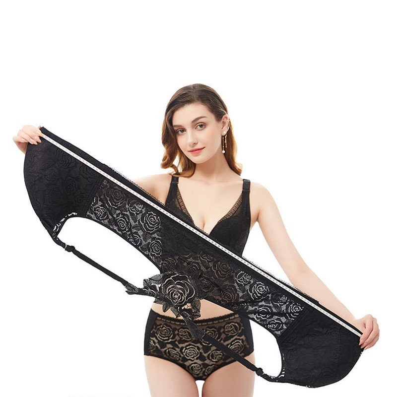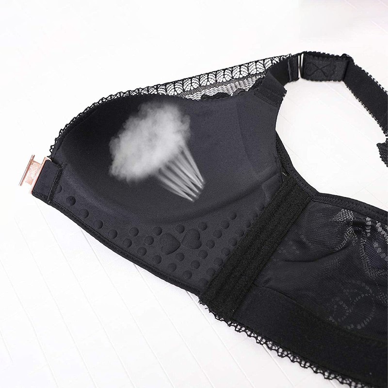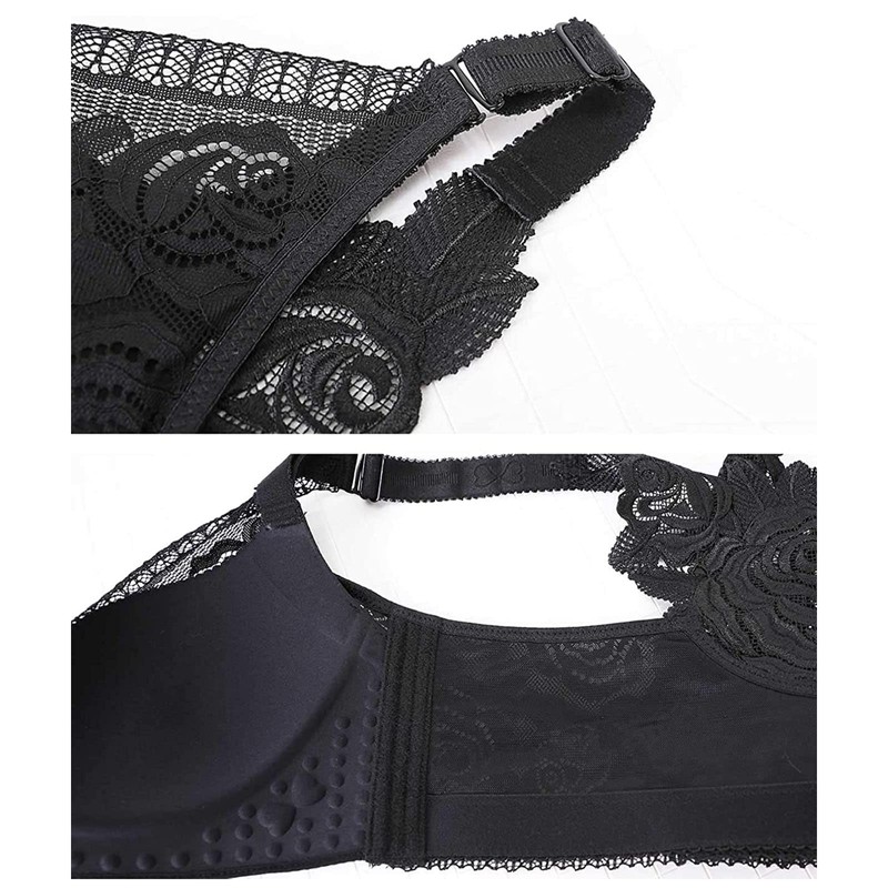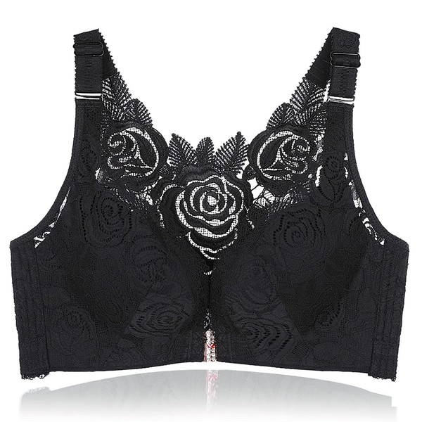 Giltpeak Floral Secrets Comfort Rose Bra, Front Closure Comfy no Wire Lace Bras, with Back Support Push up Plus Size(Black,40/C)