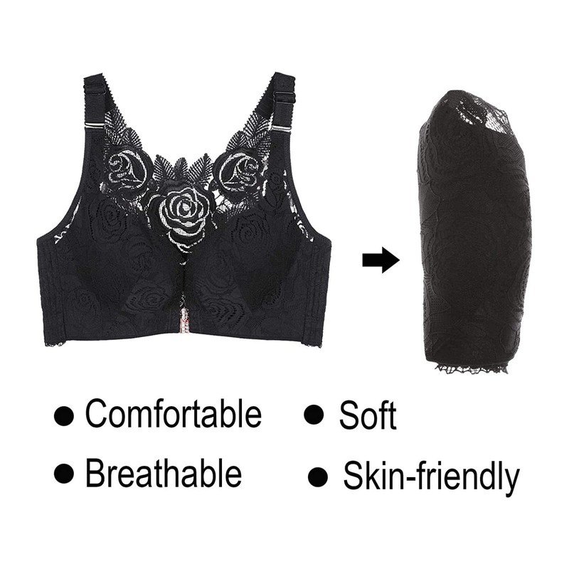 Floral Secrets Comfort Rose Bra, Front Closure Lace Comfy no Wire Bras, With Back Support Push up Plus Size