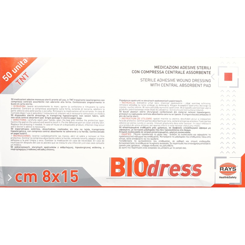 - Sterile TNT adhesive bandage, 8 x 15 cm