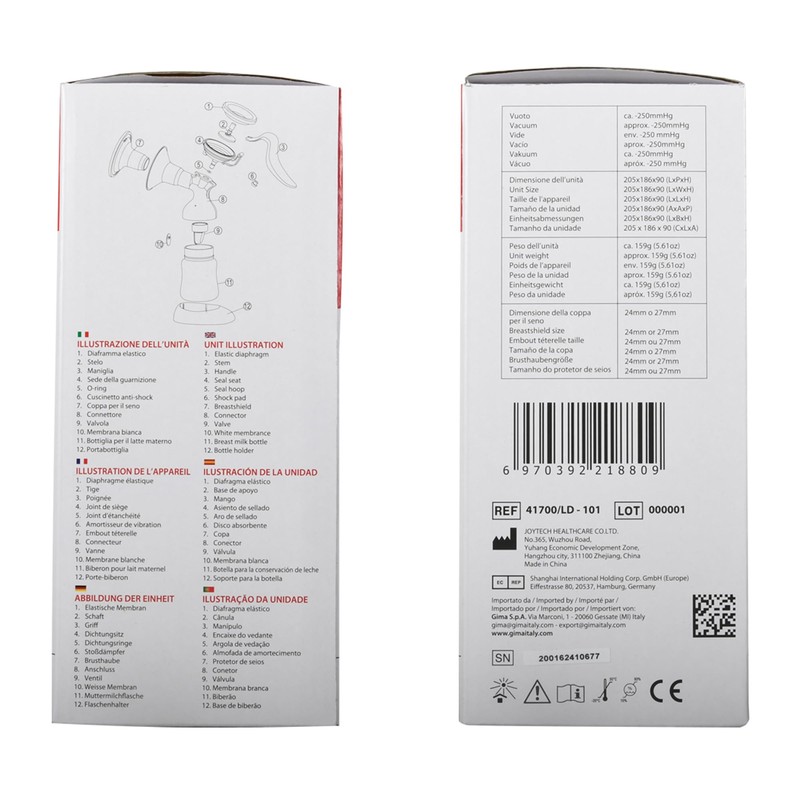 - Technical Features: Vacuum: -250mmHg Weight: 159g Sizes: 205 x 186 x 90mm Operating Mode: Manual Breastshield Size: 24mm Class I Medical Device