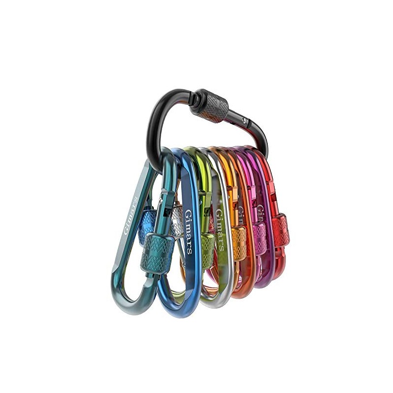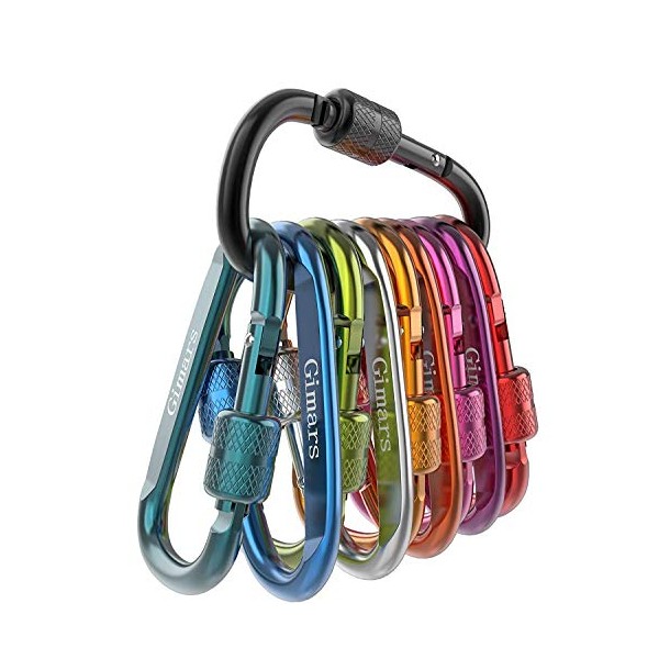 Gimars 10 PCS 6cm D Shape with Locking Screw Nuts, Spring-loaded Gate Carabiner Clips, Small Carabiner for Key Chain Camping Fishing Hiking Travelling Backpack