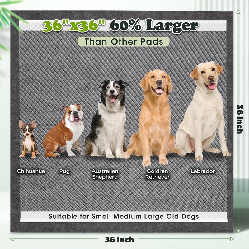 - 🦴【Extra-large Size (36 inch * 36 inch) for Potty Training & Senior Dogs】Gimars extra -large carbon puppy pads are suitable for all size dogs for pet potty training, senior dogs, disabled pets, puppy tray, on car, covering water/ food bowl spillage.