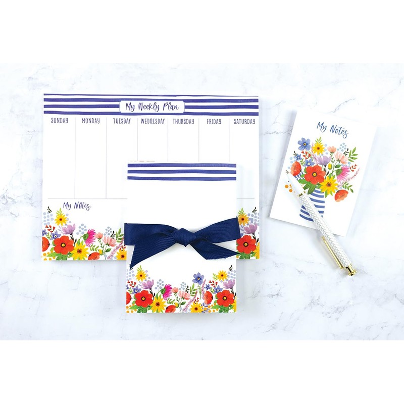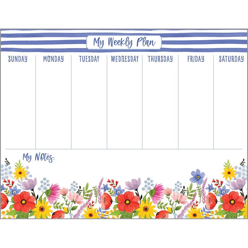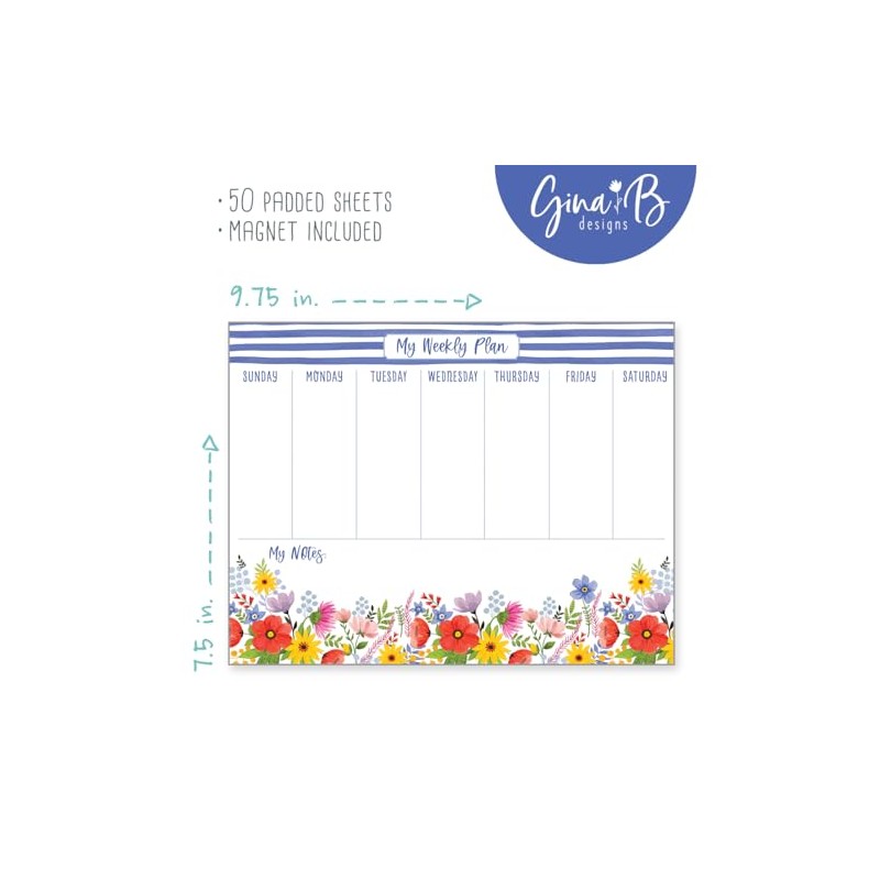Gina B Designs-Weekly Planner Calendar Pad with Attachable Magnet- Blue Stripes & Flowers-Made in the U.S.A.