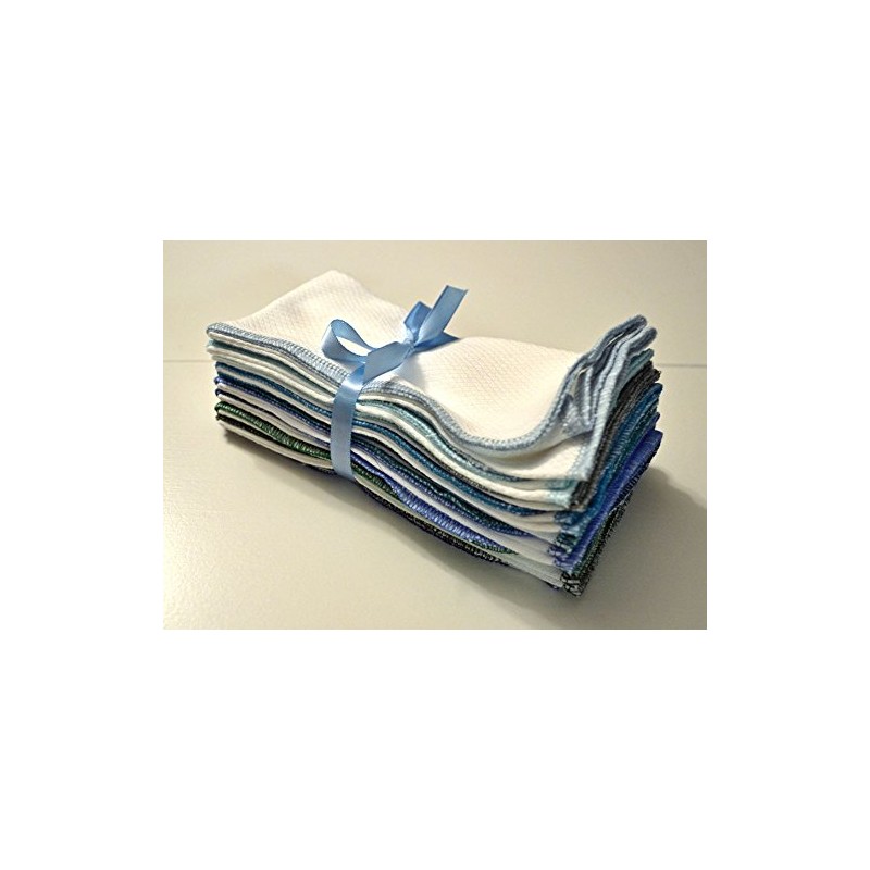 Gina's Soft Cloth Shop 2 Ply 11x12 Inches Organic Cotton Birdseye Paperless Towel Set of 10 Assorted Blues and Greens - Proudly Made in the USA!