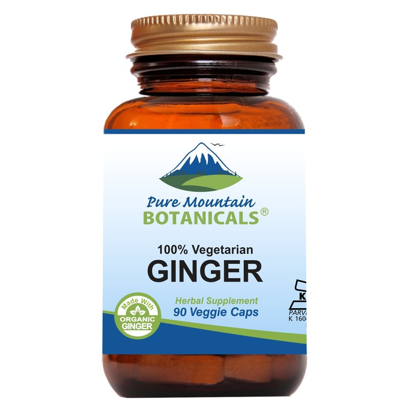 Pure Mountain Botanicals Ginger Capsules - Kosher Vegan Caps with 1000mg Organic Ginger Root
