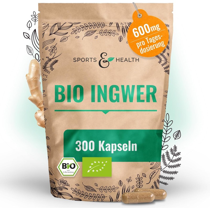 - 10-month supply of organic ginger for you: one bag of organic ginger capsules from Sports & Health contains 300 capsules - with our recommended dose of 1 capsule daily, you have a 10-month supply