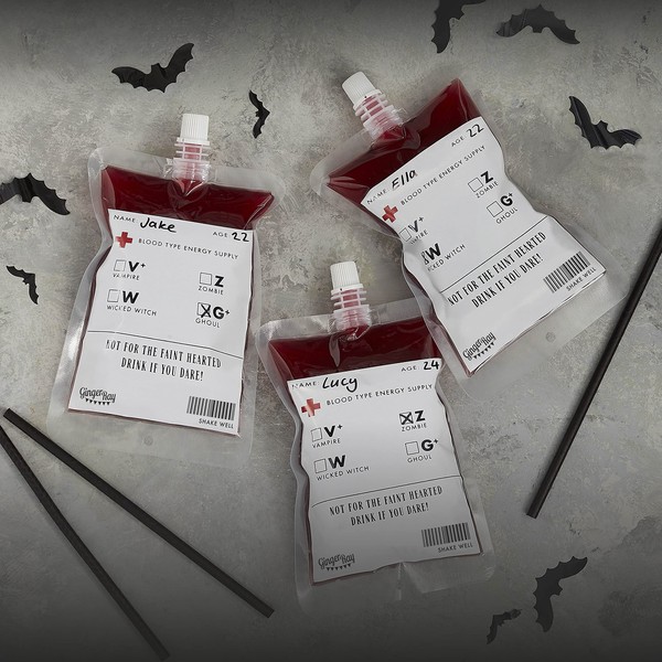 - Take your Halloween party drinks to the next level with these blood bag drink pouches.