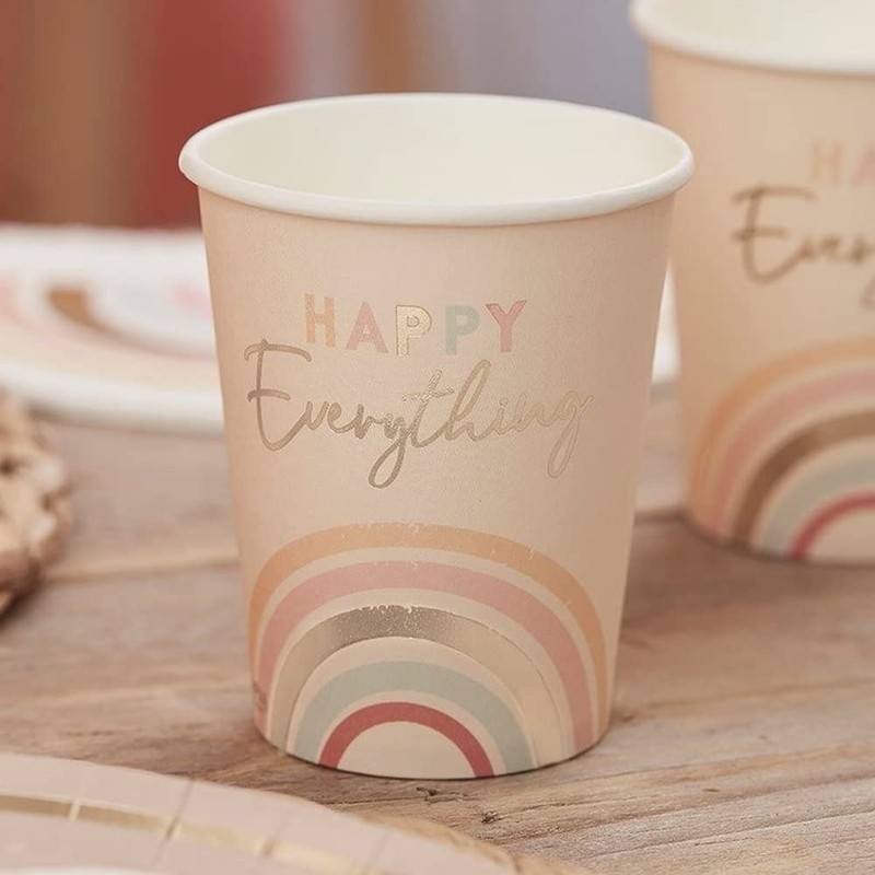 - Each pack contains 8 Rainbow 'Happy Everything' Paper Cups'.