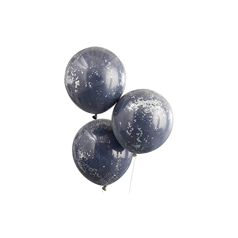 Ginger Ray Navy & Silver Shred Double Stuffed Latex Party Balloons Decorations, 3 Pack