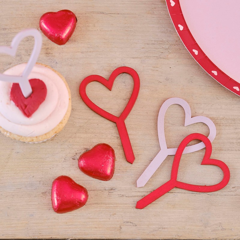 Ginger Ray Wooden Heart Cupcake Toppers Decorations Pack of 6
