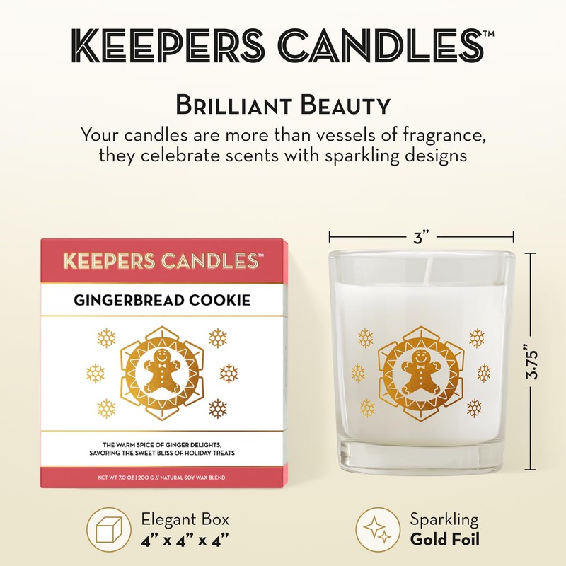 Gingerbread Cookie Scented Candle Jar by Keepers Candles - 40 Hour Burn, 7.5oz Soy Wax, 10oz Reusable Glass - Christmas Collection - Gift Box - Decorative Design