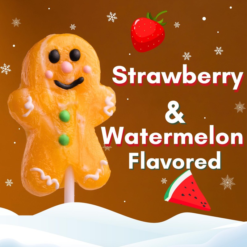 Gingerbread Man Christmas Lollipops, Individually Wrapped Strawberry and Watermelon Suckers, Holiday Party Favors, Stocking Stuffers, 24 Count