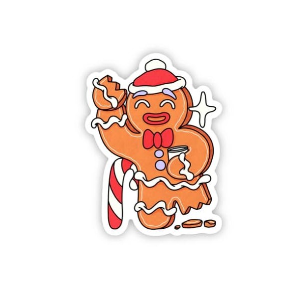 Gingerbread Man with Candycane 3 in. Sticker for Laptop Wall Car Window Bumper Guitar Refrigerator Car Body Folders Vehicle Tailgates