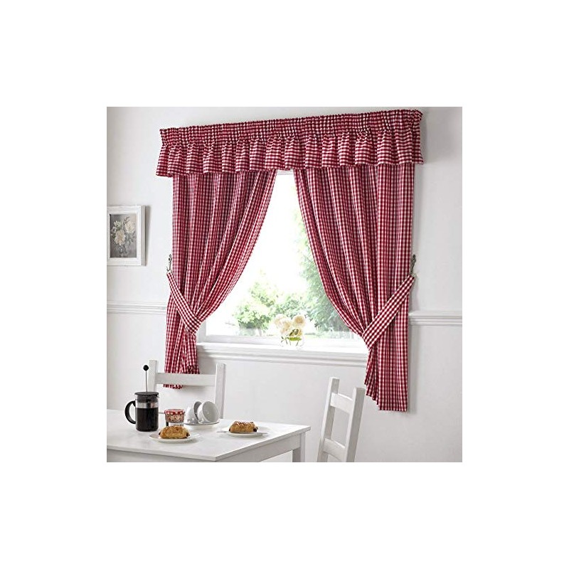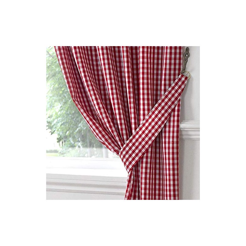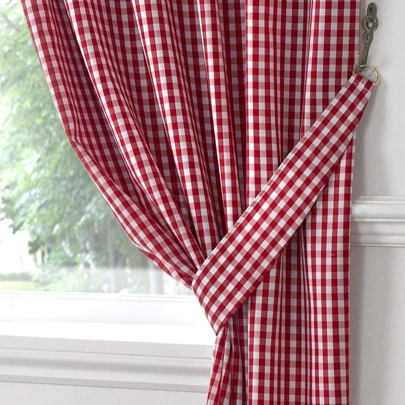 Gingham Check Kitchen Tape Top Curtains - Red (46" Wide x 42" Drop)