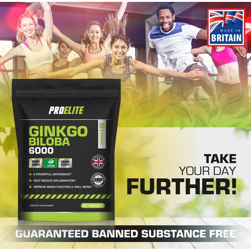 Ginkgo Biloba 6000mg - High Strength Vegan Ginkgo Biloba Leaf Extract 60 Tablets 50:1 Extract � Gluten Free, GMO Free - Made in UK by PROELITE