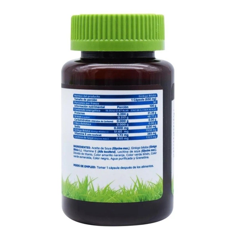 - Ginkgo Biloba 90 Cápsulas de Vidanat es un suplemento nutricional diseñado para mejorar la circulación y apoyar la salud cognitiva. Este producto es ideal para adultos mayores de 18 años que buscan un aliado en el tratamiento del envejecimiento, el estrés y la depresión. Cada cápsula contiene Ginkgo biloba, un ingrediente conocido por sus propiedades beneficiosas, junto con lecitina de soya y vitamina E, que complementan su acción. Además, es libre de gluten y no contiene lactosa, lo que lo hace apto para diversas dietas. Presentado en un frasco que asegura su frescura, este suplemento es fácil de incorporar a tu rutina diaria, ya que se recomienda tomar una cápsula con cada alimento. Recuerda mantenerlo en un lugar fresco y seco, fuera del alcance de los niños, para preservar su efectividad. Con 90 unidades por envase, Ginkgo Biloba de Vidanat es una opción práctica y efectiva para tu bienestar. Aviso legal