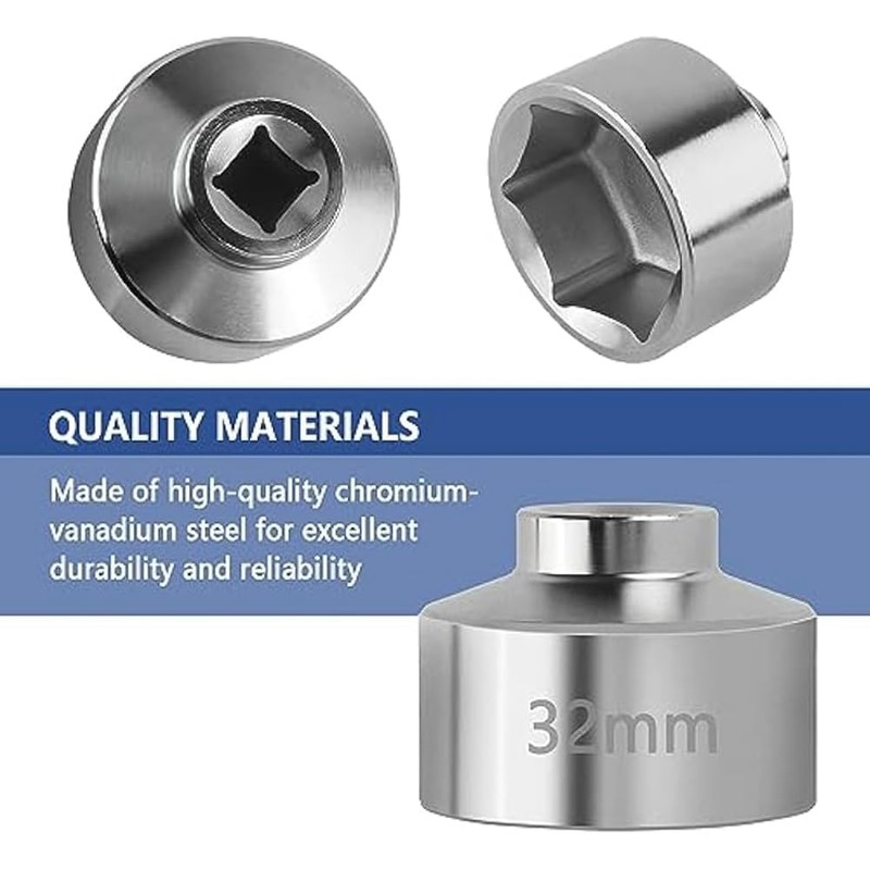 - [Value Selection]: Changing your vehicle's oil regularly is a top priority in car maintenance and whether you're a personal car owner or a maintenance professional,The 32mm socket oil filter wrenches are for money option.Not get quality tool,but you also enjoy long term use and financial-benefits.