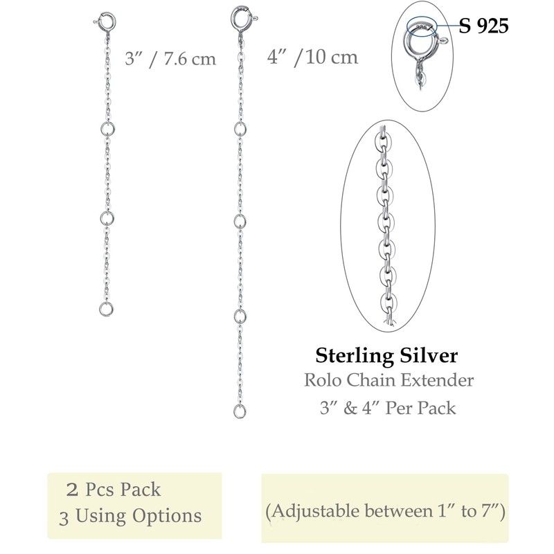 - ❤️ FINE MATERIAL ❤️ Solid Sterling Silver Extenders include all the Clasps, Chain and spring Rings. Adjustable easily by attaching them to any of your necklace, bracelet or anklet to achieve the length.