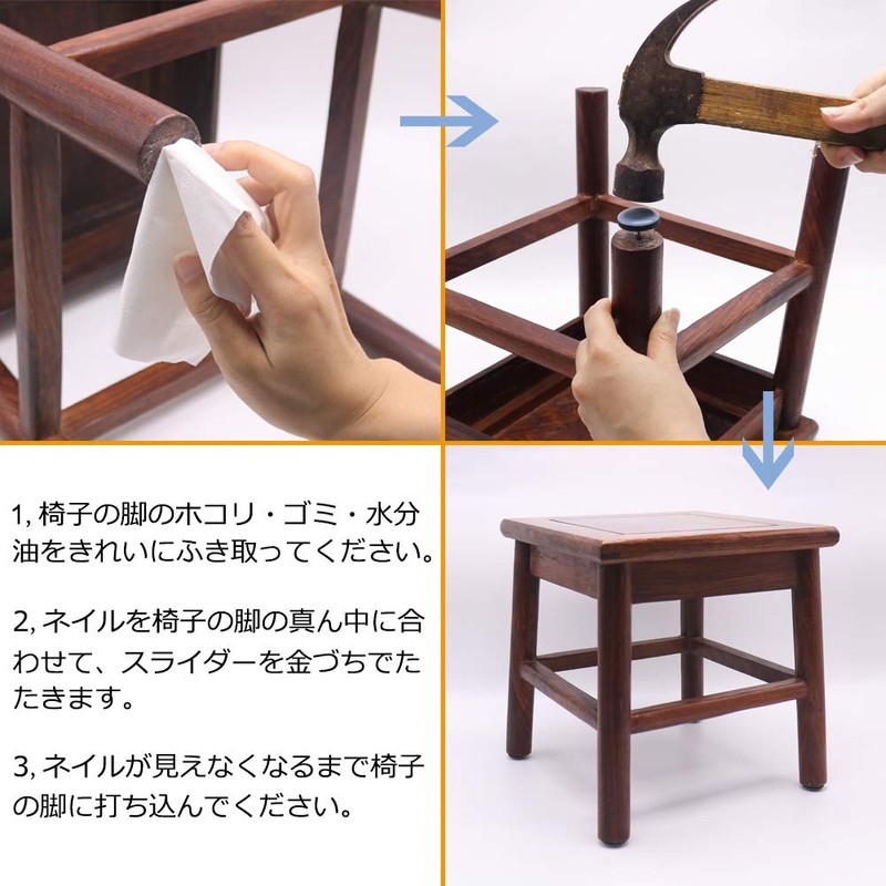 Step 2: Align the nail with the middle of the chair leg and knock the slider with a hammer
