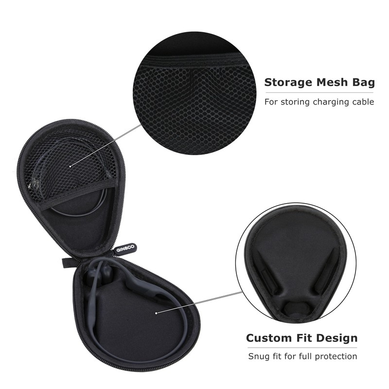 - WELL ORGANIZATION - Bone conduction headphone carrying case with unique designed shape compartment for storing SHOKZ OpenRun Sport Headphones. The mesh bag inside the hard shell case for storing charger cable and other accessories.