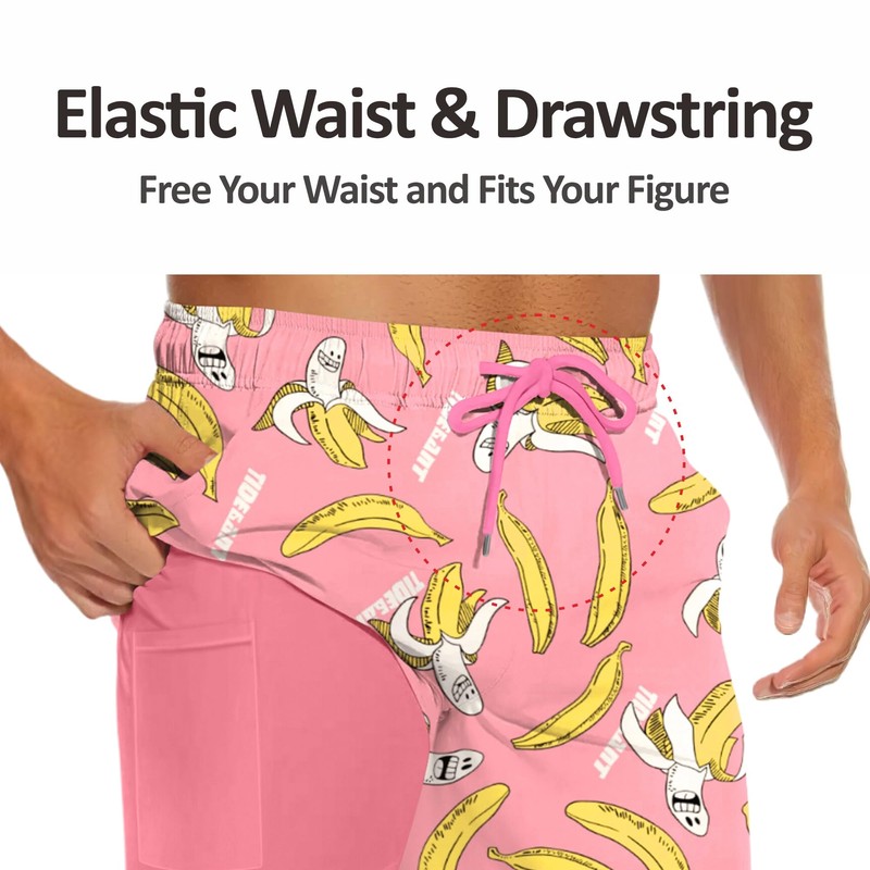 Ginsiom Men's Swim Trunks with Compression Liner Quick Dry Swim Board Shorts, Pink Banana, XX-Large